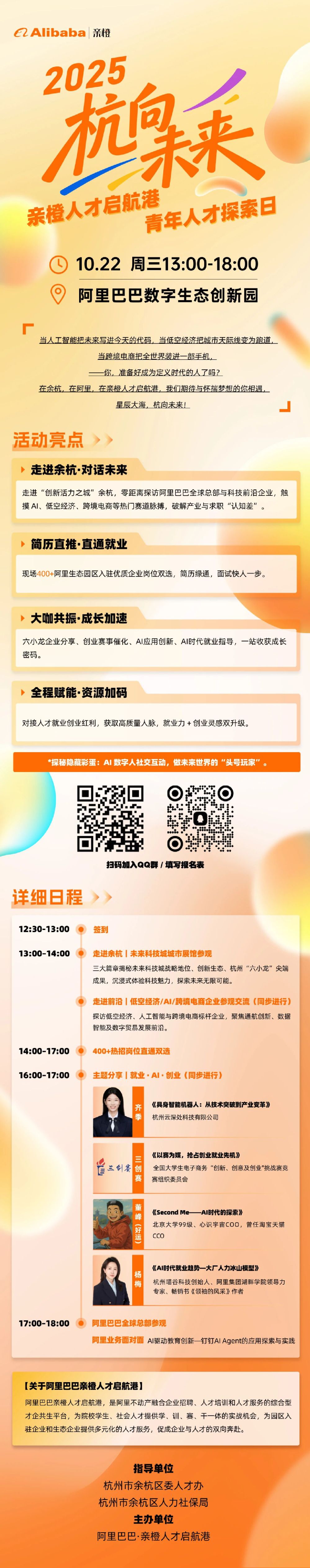 企业走访报名 | 报名开启!阿里亲橙人才探索日,锁定热门职场资源!【10月22日(周三)】