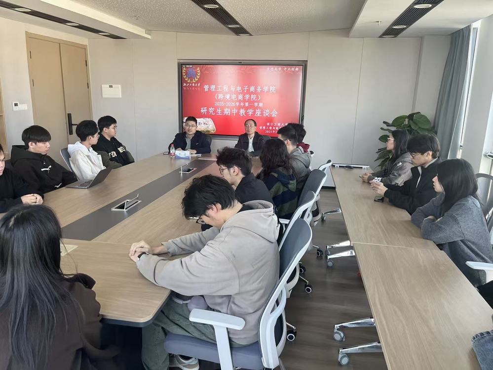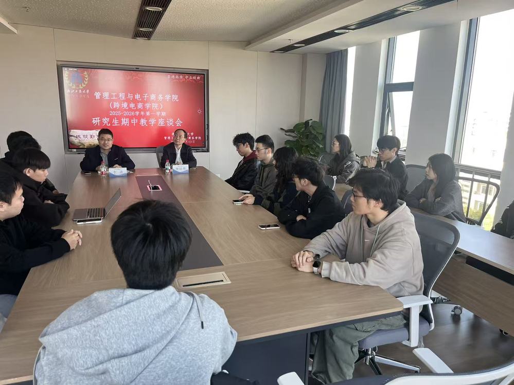 为了进一步提高研究生教学质量,了解学生对学院研究生教学工作、管理服务等方面的意见和建议,精准掌握研究生阶段性学习与科研进展,切实解决培养过程中的实际难题,11月13日周四下午管理工程与电子商务学院在科创楼738会议室组织召开了本学期研究生期中教学座谈会。学院师生代表齐聚一堂,围绕学业提升、科研支持等核心议题展开深入交流,搭建起高效畅通的师生桥梁。