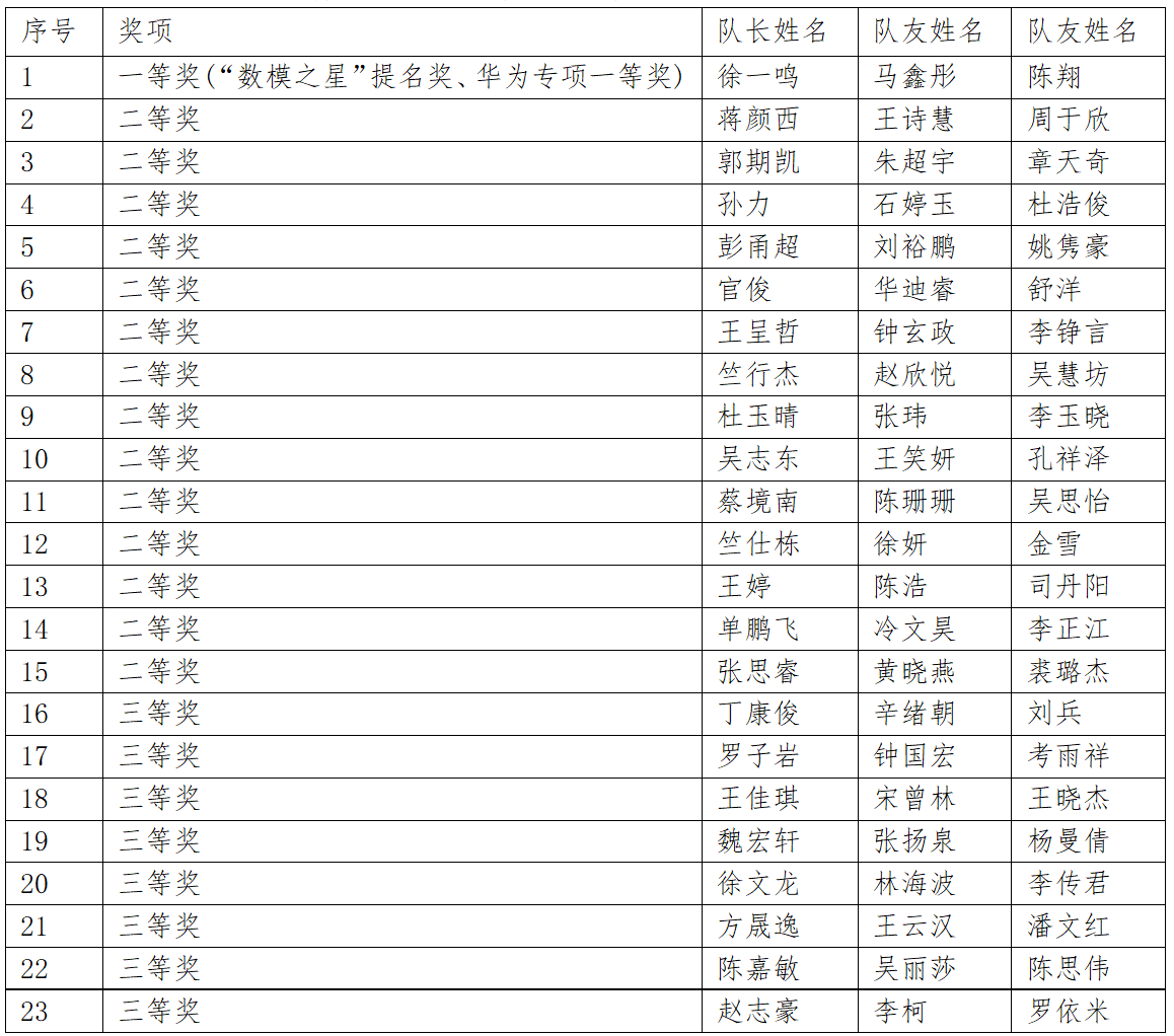 获得奖项:“数模之星”提名奖、全国一等奖、华为专项一等奖