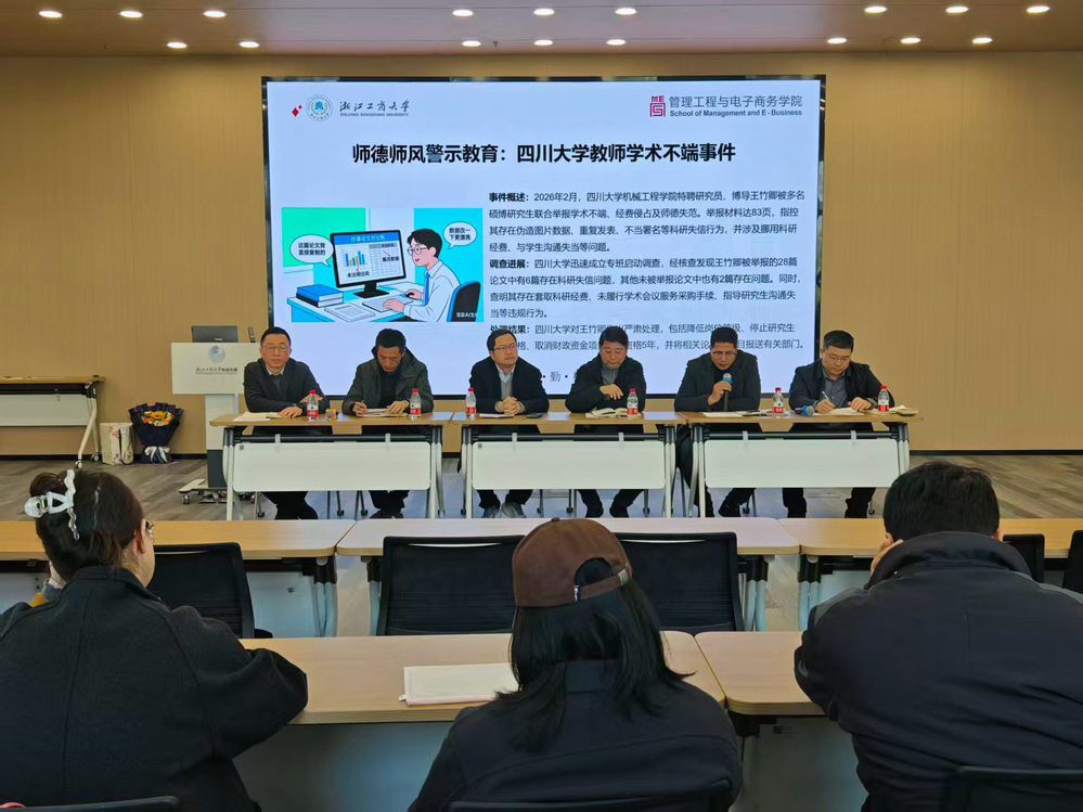 为深入贯彻落实立德树人根本任务,强化教师队伍思想政治建设与纪律作风建设,3月11日,管工学院召开师德师风警示教育大会。学院领导班子成员、全体教职工参会,会议紧扣师德师风建设核心要求,聚焦安全稳定、意识形态工作及高校科研领域廉政风险,以典型案例为镜鉴,为全体教师敲响思想警钟,推动师德师风建设走深走实。