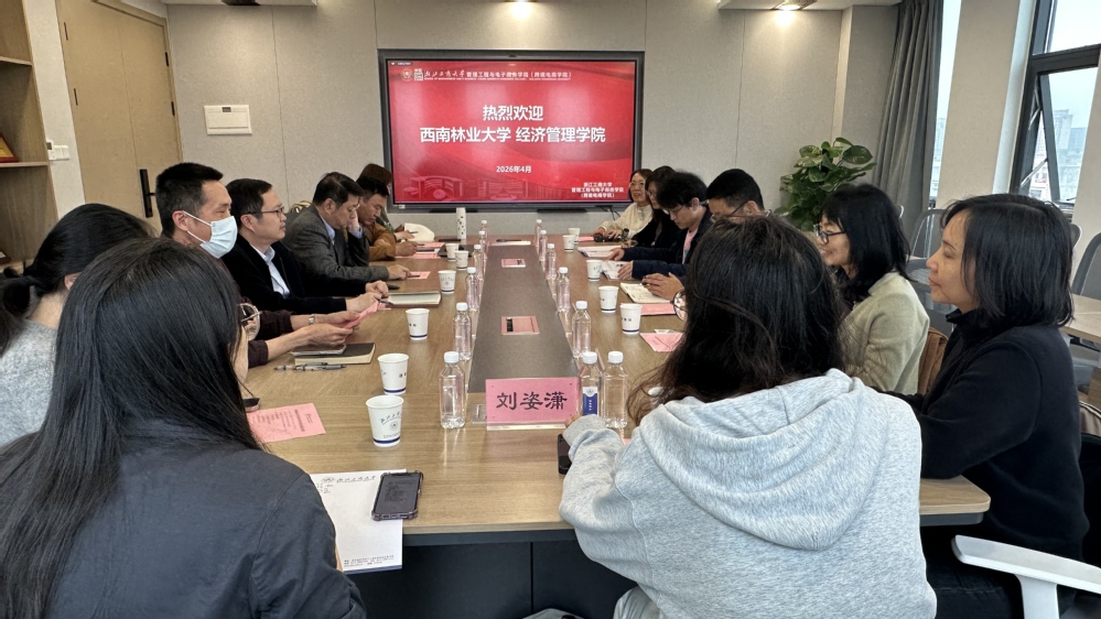 4月21日下午,西南林业大学经济管理学院院长张连刚、副院长李谦等一行7人到访浙江工商大学管工学院,在下沙校区科创大楼738会议室进行座谈交流。管工学院院长孙元、党委书记肖亮、副院长季敏,以及电子商务系主任蒋长兵、教务主管王金萍、实验室主管周怡等参加座谈。座谈会由季敏副院长主持。
